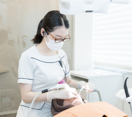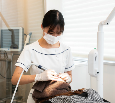 南森町 増田歯科・矯正歯科のホワイトニング施術スタッフは全員、歯科専門の国家資格を持ち、厳しい研修を経たプロフェッショナルです。 セラピストによる高度な技術で、安全かつ確実なホワイトニング効果を提供します。