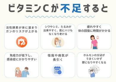 不足すると、疲労感や口内炎、歯ぐきからの出血、感染症リスクの増加が見られることがあります。