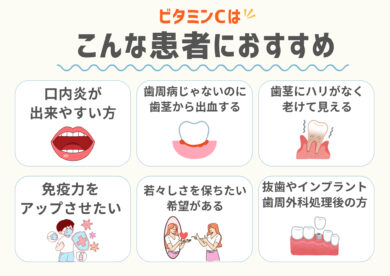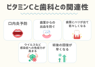- コラーゲンの生成を助け、歯ぐきや粘膜を丈夫に保ち、感染の入口をブロックする