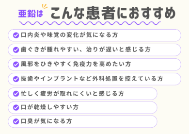 亜鉛は免疫細胞の働きを支え、歯ぐきや粘膜の回復を助ける