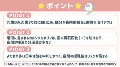 夜だけでなく、日中の習慣が虫歯予防のカギになります。
