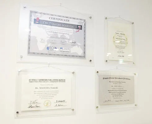 南森町 増田歯科・矯正歯科では、国際インプラント学会認定医、日本顎咬合学会咬み合わせ認定医の院長・増田智基が治療を担当いたします。経験や知識が豊富なため、患者様のご要望やお口の中の状況に合わせた材料や治療法のご提案が可能です。また、当院では被せ物の精度にこだわっており、新しい材料での型取りや、詰め物・被せ物を作る際の模型作製も高い品質を維持できるよう努めております。