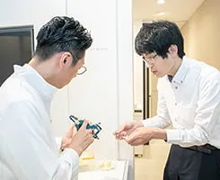 詰め物・被せ物の作製は、見た目に配慮するため、患者様と歯科医師、歯科技工士が綿密にコミュニケーションを取って行います。細かいご要望にもお応えできるのは、南森町 増田歯科・矯正歯科ならではです。さらに、患者様に安心して治療を受けていただけるよう、当院では自由診療の詰め物・被せ物に対して5年間の長期保証期間を設けています(※ただし、定期検診を受診されている方のみ)。