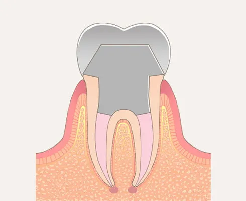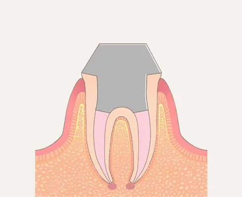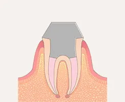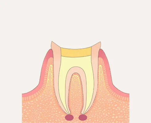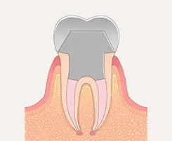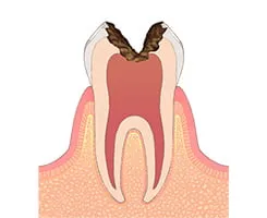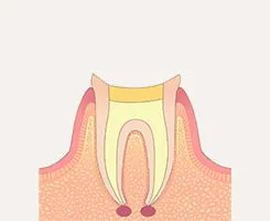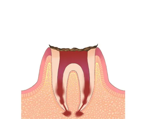 歯の神経まで虫歯が進行している状態です。激しい痛みや熱いものがしみる症状がみられます。神経は一度感染すると残しておくことができないため、根の治療とも呼ばれる根管治療を行います。