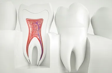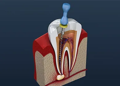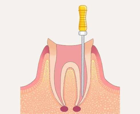 虫歯が進行し、細菌が歯の神経に感染すると炎症が起き、さらに症状が進行すると神経は死んでしまいます。感染した神経を取り除き、その部分に薬剤を充填し再び歯としての機能を回復するための第一歩が根管治療です。