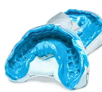削った部分の型採りを行います。自由診療の場合は一度仮歯を入れて、噛み合わせを確認してから型を採る場合もあります。