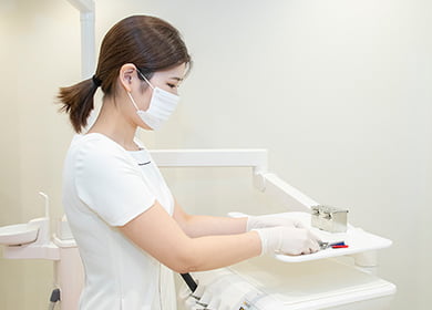 セルフケアの基本となるブラッシング指導をはじめ、歯石除去や噛み合わせの調整などを行います。重度の歯周病で残せない歯などは必要に応じて抜歯します。